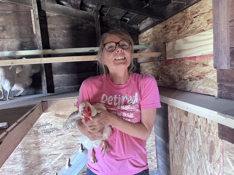 Through her involvement with the hub—where she shares her homemade sourdough bread—Kirstan connected with Nate Ross, who generously shared five of his chickens and offered helpful tips to get her started.