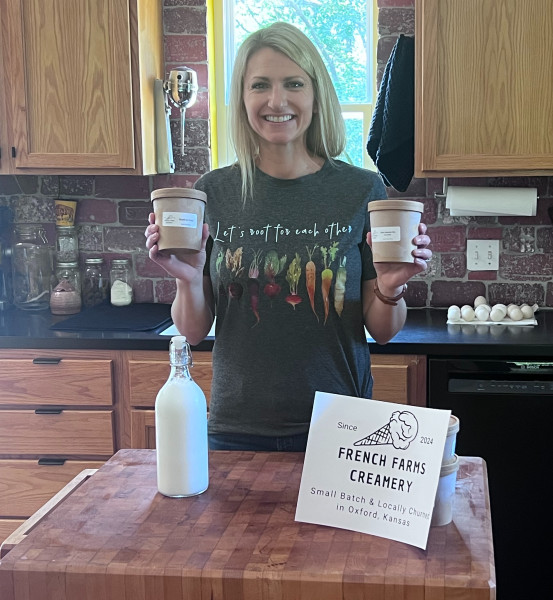 She began experimenting with flavors in her own kitchen and, later, rented out a certified commercial kitchen in a recently closed coffee shop. Soon, French Farms Creamery was born. Lindsay draws inspiration from local ingredients, featuring flavors like mint, sage, cantaloupe, and watermelon, alongside beloved classics such as vanilla and coffee chocolate chip.