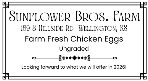 Established 2025 - Currently offering chicken eggs and duck eggs, with plans to offer fresh fruits and vegetables, rabbit meat, duck meat, and quail meat and eggs starting Summer 2026. Located between Wellington and Oxford in Sumner County, with easy access off the highway and local delivery also available.